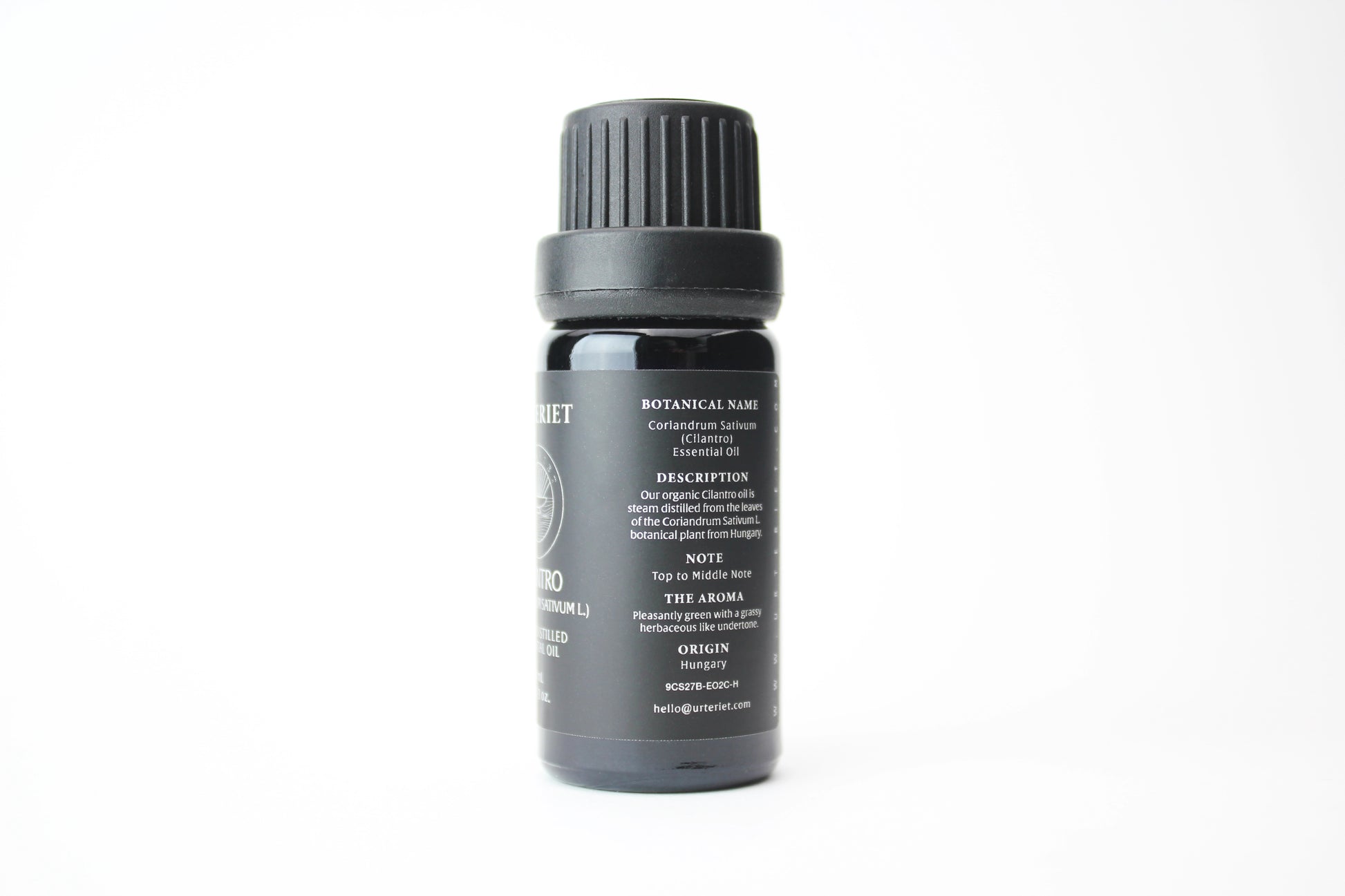Korianderfrøolje utvinnes fra Coriandrum sativum, en ettårig plante som stammer fra Sørøst-Europa, men som nå dyrkes over hele verden. Den inneholder mellom 60-87 % linalool, en mild, varm og treaktig monoterpenalkohol som gjør oljen svært allsidig både i aromaterapi og parfymeri. Korianderfrøolje gir et bærekraftig alternativ til Rosentre-olje, som dessverre er truet av avskoging og ikke lenger produseres på en miljøvennlig måte.